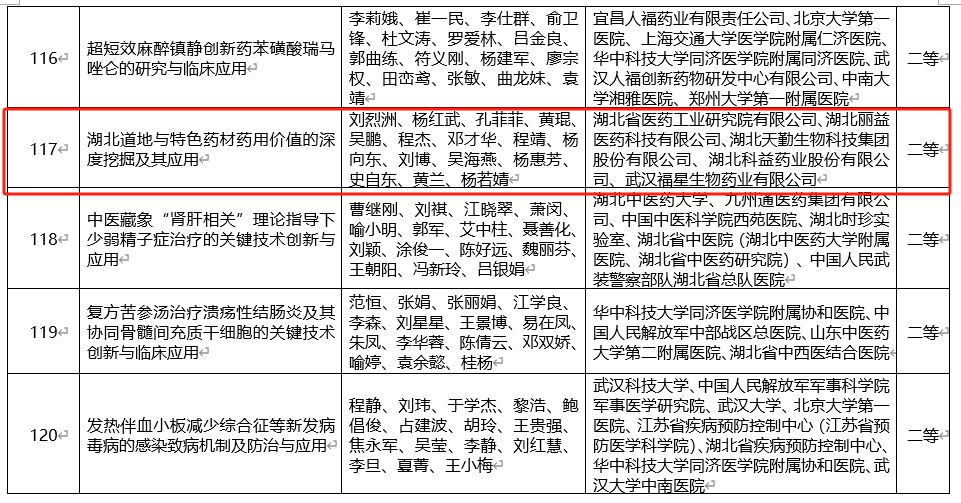 近日,2025年度湖北省科學(xué)技術(shù)進(jìn)步獎名單公示,由天勤生物聯(lián)合湖北省醫(yī)藥工業(yè)研究院有限公司、湖北麗益醫(yī)藥科技有限公司、湖北科益藥業(yè)股份有限公司、武漢福星生物藥業(yè)有限公司共同完成的“湖北道地與特色藥材藥用價值的深度挖掘及其應(yīng)用”項(xiàng)目,榮獲二等獎。這一成果標(biāo)志著湖北省在道地藥材資源開發(fā)利用與中醫(yī)藥現(xiàn)代化研究方面取得重要進(jìn)展。